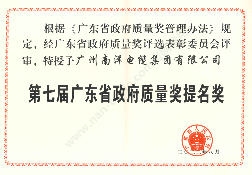 • 第七屆廣東省政府質(zhì)量提名獎(jiǎng)證書(shū)